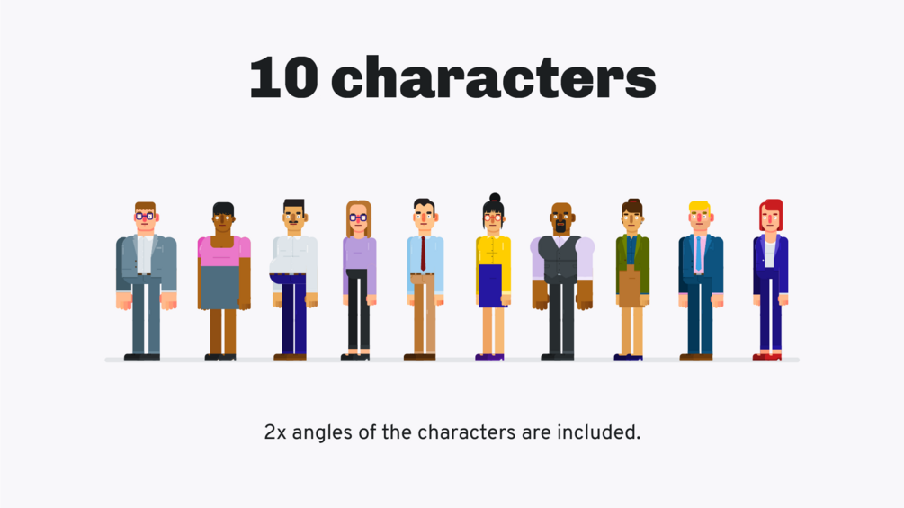 Vector character kit - 10 business themed characters with 2x angles each. You can easily adapt and edit the character to suit your project!