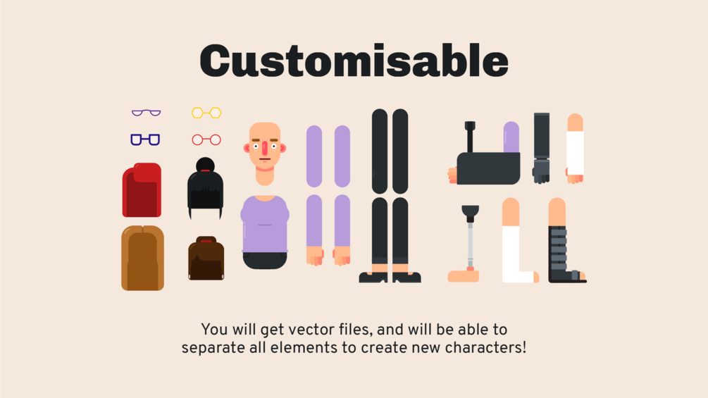 The characters are easily updatable - you may create your own hairstyles, clothes and faces and easily swap them out in animation via the AI file.